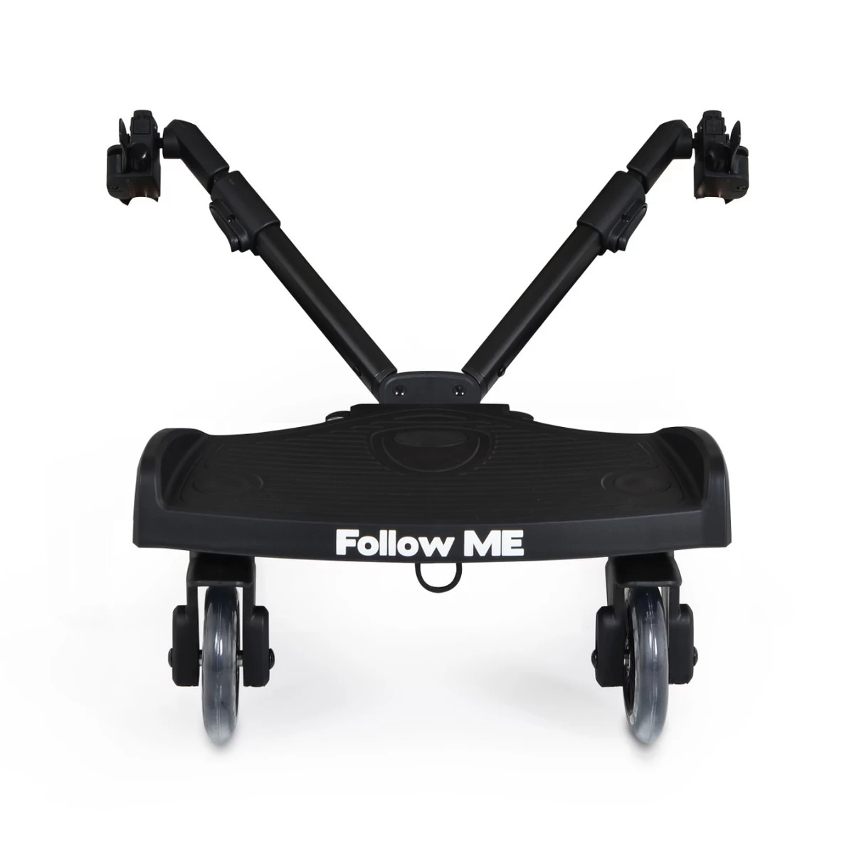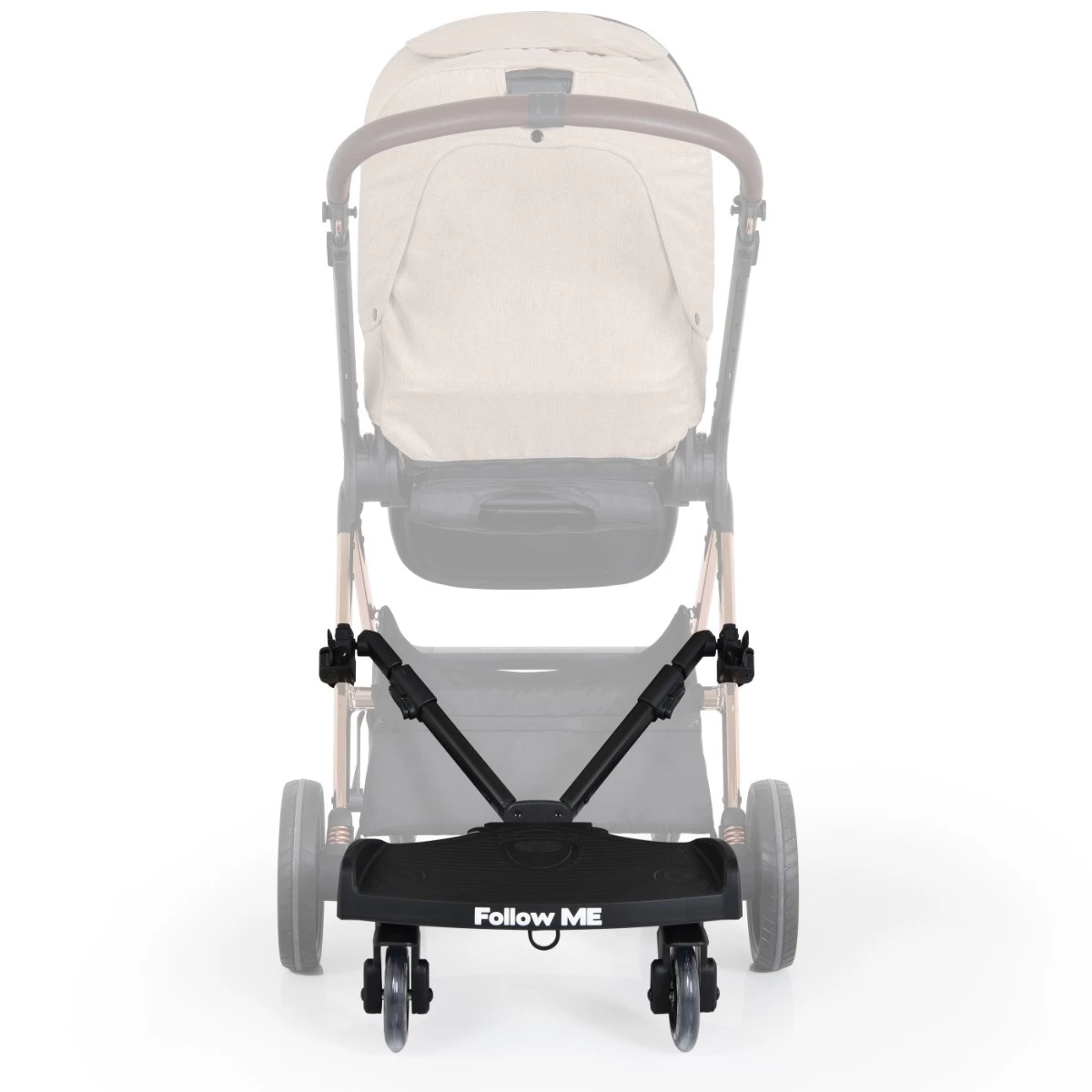 Dit meerijdplankje is universeel. Door de verstelbare bandjes waarmee je hem bevestigd, kan deze aan bijna elke kinderwagen bevestigd worden. Door de zwenkwieltjes blijft je wagen ook makkelijk te bewegen.