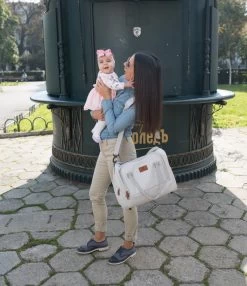 De schouderriem is makkelijk verstelbaar waardoor de tas als schoudertas gebruikt kan worden, of aan de kinderwagen gehangen kan worden. Daarnaast is hij ook als handtas te gebruiken.