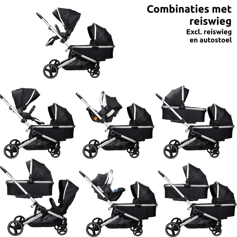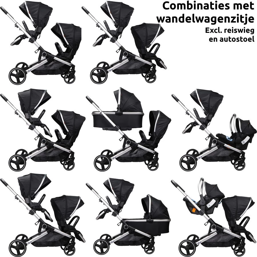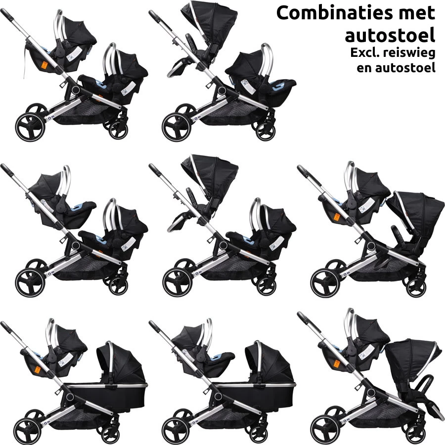 Ding Amigo Black/Silver Tweeling Kinderwagen Incl. 2 Autostoelen DI-191710