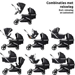 • Eén reiswieg naar binnen en één wandelwagenzitje naar binnen of buiten gericht (reiswieg niet meegeleverd, apart verkrijgbaar)