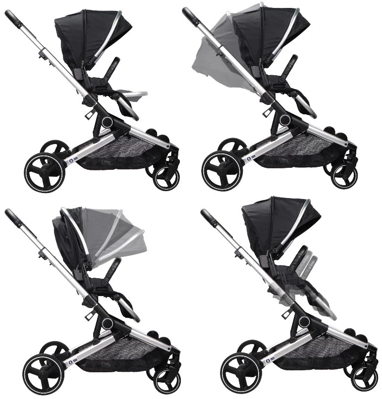 Deze wagen is vanaf de geboorte te gebruiken, doordat de zitjes in volledige ligpositie geplaatst kunnen worden. Ook kan je op het frame één of zelfs twee reiswiegen (niet meegeleverd, apart verkrijgbaar) plaatsen. De wagen bestaat dan dus uit een wandelwageninzet met reiswieg óf twee reiswiegen. De reiswieg kan je zowel boven als onder op het frame plaatsen en kan ook in twee richtingen op het frame geplaatst worden. Om de reiswieg op het frame te plaatsen heb je geen aparte adapters nodig.