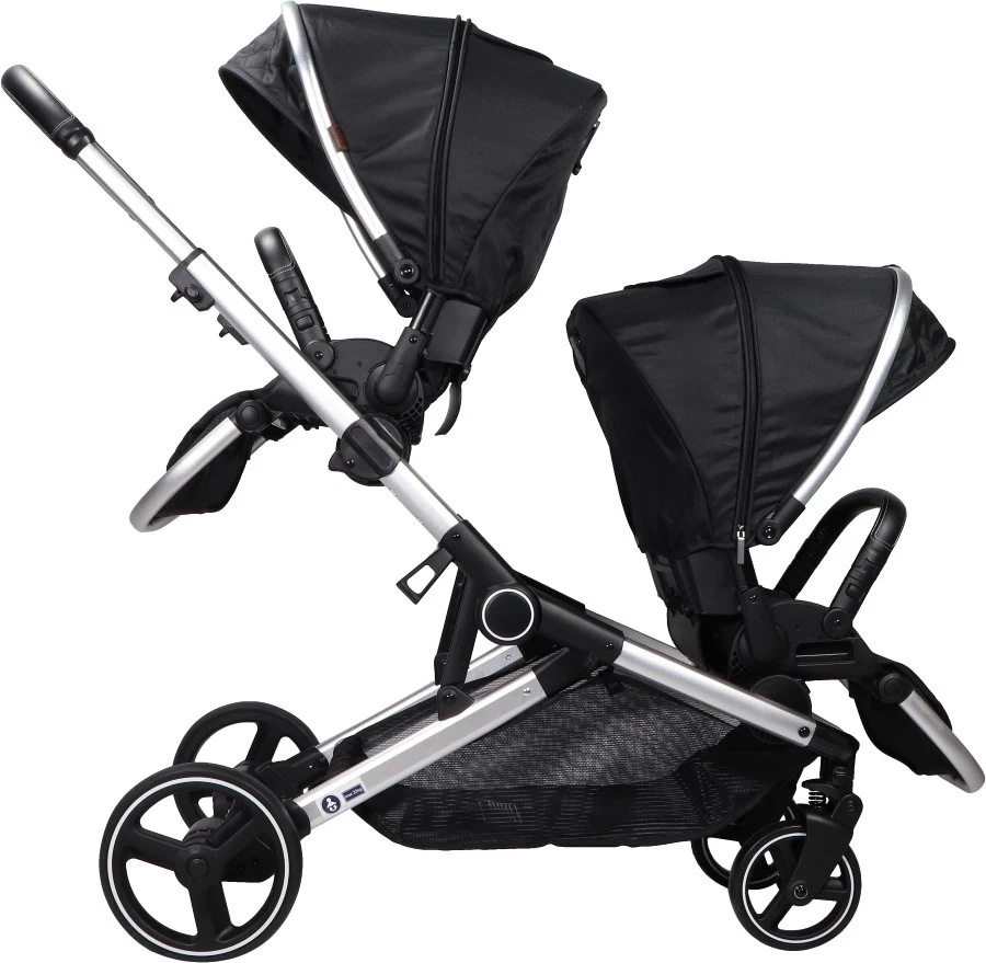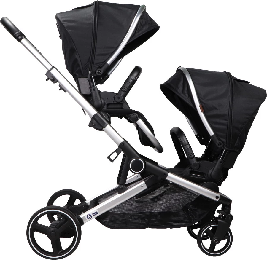 Met de Ding Amigo kan je zorgeloos op pad met twee kindjes. De Ding Amigo Tandem Duowagen kan gebruikt worden voor tweelingen, maar ook voor kindjes met een wat groter leeftijdsverschil. De duowagen wordt geleverd met twee wandelwageninzetten, die je zowel naar je toe als van je af op het frame kan plaatsen. Ook kan je ze op verschillende hoogtes op het frame plaatsen.