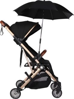 Deze zwarte buggy parasol van Ding is super handig! De parasol geeft een UV 50+ bescherming en heeft een universele klem, waardoor hij op de meeste buggy’s en kinderwagens met ovale en ronde buizen past. Het frame is gemaakt van carbonvezel waardoor hij sterk en roestvrij is. Daarnaast bestaat het eerste stukje na de klem uit flexibel materiaal zodat de paraplu in een gewenste positie gezet kan worden. Zo ben je er van verzekerd, dat je kindje de hele dag beschermd is tegen de felle zon.