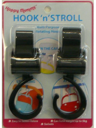 De Hook ’n Stroll tassenhaken zijn handige en multifunctionele tassenhaken voor aan de kinderwagen of buggy. Makkelijk door middel van het klittenband eenvoudig om bijvoorbeeld aan de duwstang van de kinderwagen te bevestigen om er vervolgens uw tas, jas of boodschappen aan te hangen.