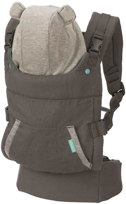Met de praktische én super schattige Cuddle Up Draagzak van Infantino kun je je kleintje meedragen op 2 verschillende manieren: op de buik en op de rug… En nog op een ergonomische wijze ook! Je kindje zit namelijk in de ergonomische kikkerhouding. Het hoofdje wordt ondersteund door een de gewatteerde hoofdsteun én de afneembare kap biedt extra bescherming onderweg. En dat niet alleen: omdat de kap voorzien is van oortjes en een gezichtje ziet je kindje er super schattig uit. Net een beertje!