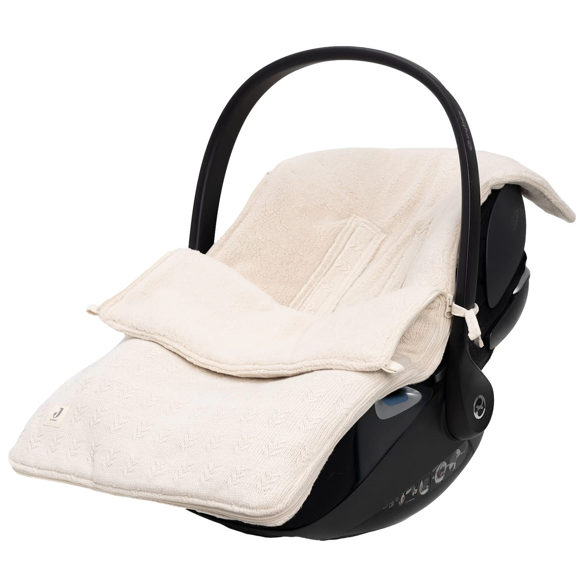 Deze comfortbag komt uit de Grain Knit collectie van Jollein en heeft een gebreid patroontje aan de buitenkant en zachte fleece aan de binnenkant. Daarnaast heeft de voetenzak een capuchon die je kan dicht maken door middel van drukknoopjes. Zo krijgt je kindje het niet koud tijdens de reis.