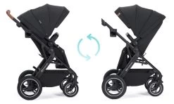 Ook aan comfort voor jou als ouder is gedacht! De duwbeugel is afgewerkt met eco-leer en in 4 verschillende niveaus verstelbaar voor meer rijcomfort. Dankzij de grote (21 en 30 cm diameter) luchtbanden met goede demping is elke rit comfortabel. Zowel tijdens een stadswandeling of boswandeling is de wagen makkelijk te besturen. De voorwielen zijn 360 graden draaibaar, maar tevens te vergrendelen. De centrale rem is eenvoudig met één voet te bedienen langs de bovenkant, zodat het je schoen niet zal beschadigen.