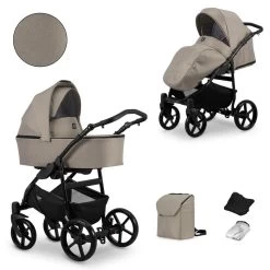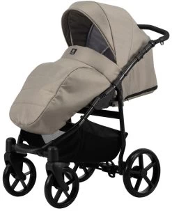 De kinderwagen wordt de eerste paar maanden gebruikt met de reiswieg, hier ligt je kleine in vanaf de geboorte tot ongeveer 6 maanden. De reisweg is voorzien van grote zonnekap, waarvan je het onderste gedeelte kan open ritsen en er een ventilatievenster tevoorschijn komt. De zonnekap heeft ook een kleine luifel die zon en wind zoveel mogelijk tegenhoudt. Daarnaast wordt de reiswieg geleverd met voetendekje, waardoor hij voor zomer én winter geschikt is! Daarnaast kun je de rugleuning van de reiswieg zelfs verstellen, wat handig is als je kleine spuugt of lekker naar buiten wil kijken.