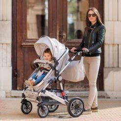 De Lora heeft zwenkwielen aan de voorkant en shock absorbers, hierdoor is de wagen wendbaar op ieder terrein. De in hoogte verstelbare duwstang zorgt ervoor dat jij altijd comfortabel achter de wagen kan lopen. Wil je onderweg wat boodschappen doen? Geen probleem om ze mee te nemen in de grote boodschappenmand!