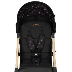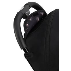 De wagen is voorzien van een ruime zonnekap met mooi design die je kindje beschermd tegen verschillende weersomstandigheden. De kap heeft een kijkluikje, zodat je je kindje altijd kunt zien. Dankzij de 5-punts veiligheidsgordel en de valbeugel zit je kindje altijd veilig in de wagen. De handvaten zijn tevens stijlvol afgewerkt met eco-leer. Ook heeft de wagen een ruime boodschappenmand waar je de nodige spulletjes in op kunt bergen.