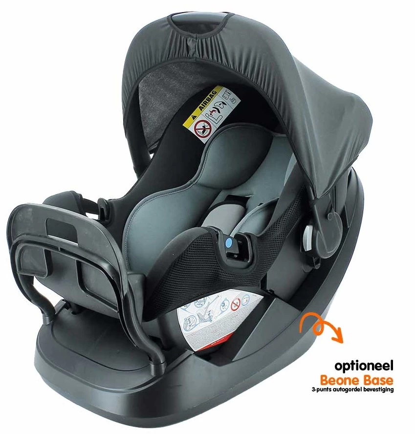 De Beone is ideaal voor als je veel onderweg bent. De autostoel is met apart verkrijgbare universele Maxi Cosi adapters makkelijk op een kinderwagen te bevestigen. Je kindje zit veilig vast met de 3-punts veiligheidsgordel en heeft een extra zacht hoofdkussen. De gordel kan makkelijk versteld worden en heeft gordelpads voor meer comfort voor je kleine.