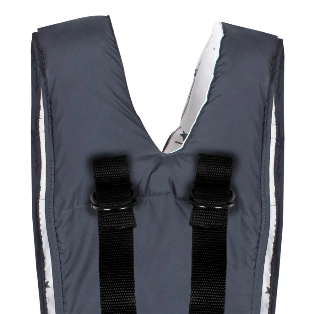 Deze draagzak is gemaakt van comfortabel katoen en is op de belangrijke punten verstevigd met siliconen vezels voor extra comfort en ondersteuning. De binnenkant heeft een schattige sterrenprint! Je kindje zit veilig en comfortabel in de draagzak doordat de beentjes los van elkaar in de draagzak hangen.